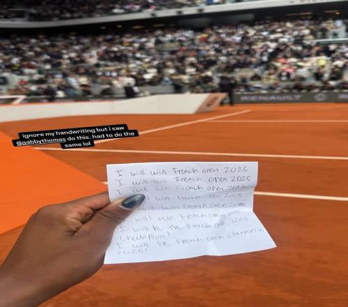 高芙晒出了自己写的一张便签,上面写满了‘我会赢得2025年法网冠军’。高芙则配文写道:“别介意我的字迹,我是看到加布里埃尔-托马斯这么做的,忍不住也想照着来一遍,哈哈。”