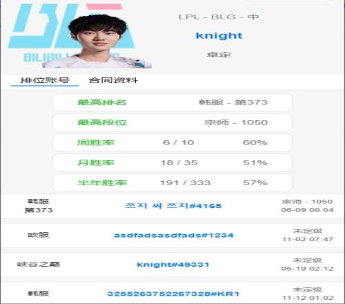 冥想训练还是藏东西BLG选手月Rank数量,knight为对位Rank最少的选手